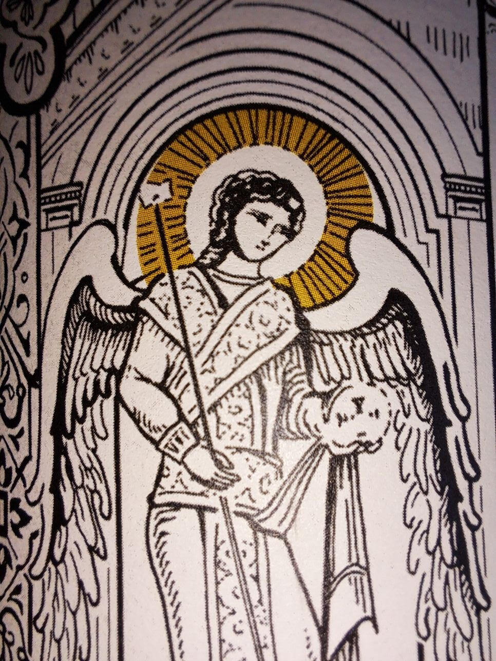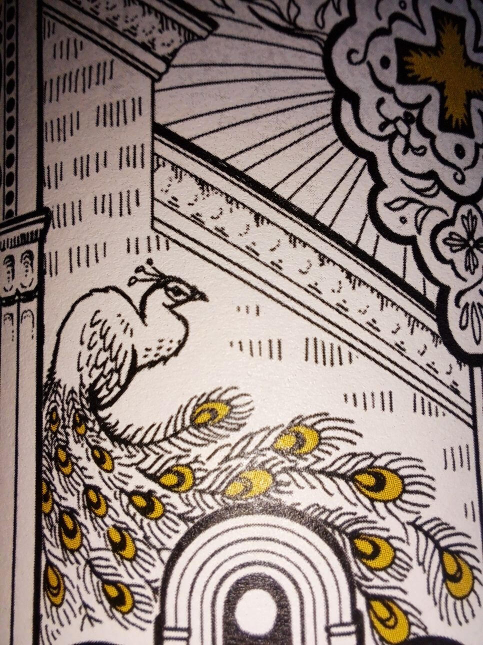 Now that I have a closer look, the artwork is very beautifu. It looks like it is drawn on white paper, in black and golden strokes (but it must be printed, right?).